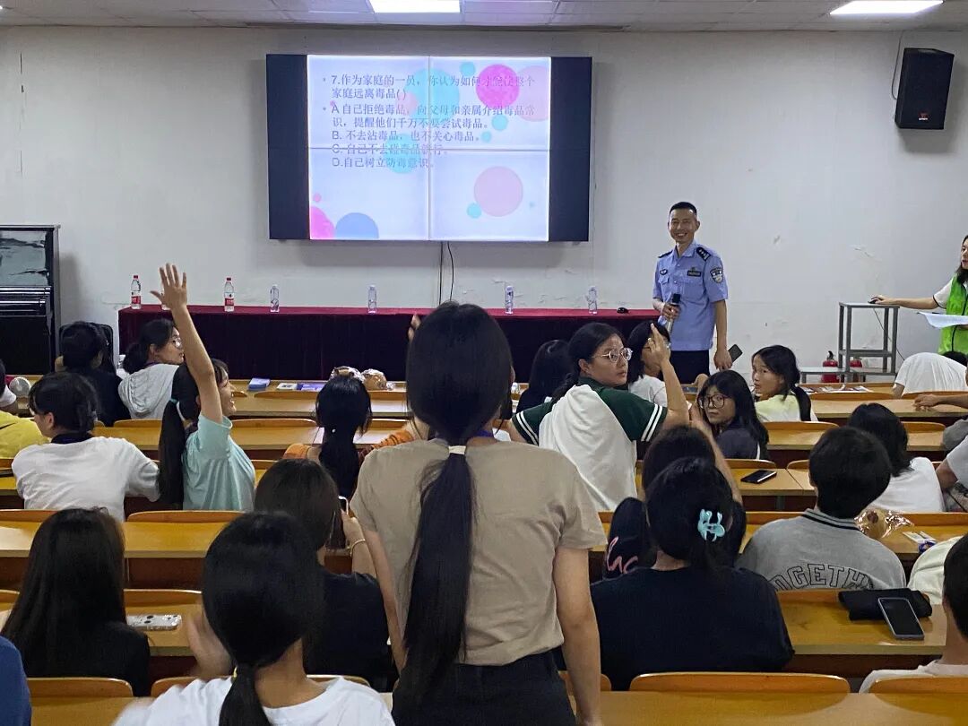 禁毒课堂上,禁毒民警和校外禁毒辅导员以“健康人生,绿色无毒”为主题,从“什么是毒品”“毒品的危害”“禁毒法律法规”“如何防范、拒绝毒品”等四个方面做了深入浅出地介绍;重点揭示了“笑气”、依托咪酯的真实面目,指出非法滥用会对身体造成不可逆的伤害,也为社会环境带来巨大危害;教会学生们如何拒绝毒品,谨防掉入毒品伪装的陷阱。