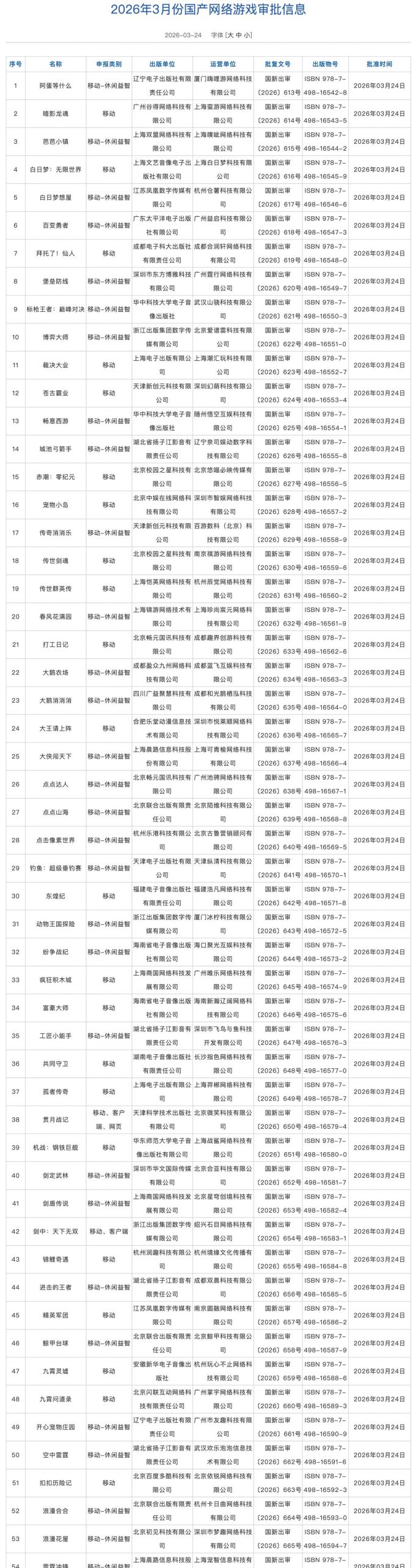 版号审批:3月共133款游戏获版号,腾讯、恺英等厂商新品在列