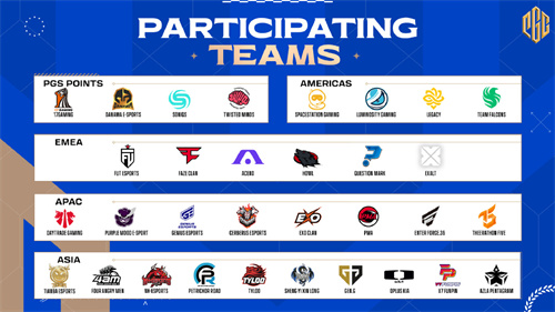基于PGS积分和PGC积分,SONIQS、17GAMING、TwisedMinds、Danawa四支战队会直接获得本次赛事的门票。其他战队则是通过本地区联赛的表现来进行决逐。其中PCL和PEC赛区分别有6支战队、PWS和PAS赛区各4支战队,PTS赛区3支战队、PVS赛区2支战队,PJC、PCR、PML分别1支战队。